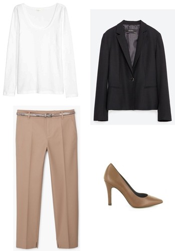 . Por exemplo: hoje estou com umas calças beges, uma camisola branca, blazer preto e sapatos castanhos. É formal na mesma.